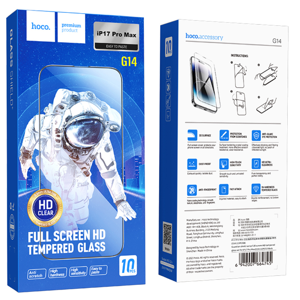 Tempered Glass Hoco Premium Series G14 0.33mm HD Full Screen Large Arc Edges Protection HD 3D για Apple iPhone 17 Pro Max Σετ 10 τεμ.
