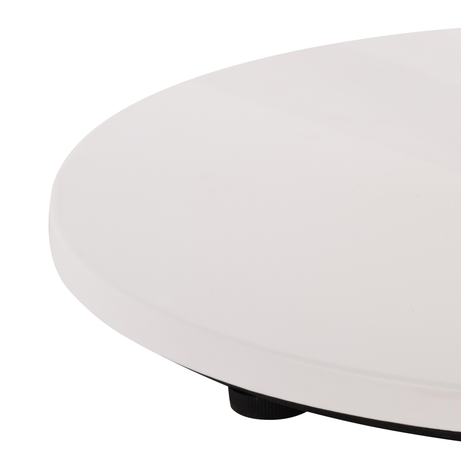 Η ΗΜ476.02 είναι μια στρογγυλή βάση για τραπέζι σε ΛΕΥΚΟ ΜΑΤ χρώμα. Αυτή η βάση είναι αλουμινίου με μία κολώνα η οποία στηρίζεται σε μια βαριά επίπεδη αλουμινένια επιφάνεια. Το χαρακτηριστικό που κάνει αυτή την βάση ιδιαίτερα πρακτική είναι ότι το καπάκι που θα διαλέξετε στηρίζεται σε μια διάταξη «σταυρό», με αποτέλεσμα να μπορεί να δεχθεί τόσο στρογγυλά καπάκια, όσο και τετράγωνα. Επίσης, στο κάτω μέρος της διαθέτει ρυθμιστές ύψους (ρεγουλατόρους). Ιδανική πρόταση για συνδυασμό με επιφάνειες σχεδόν κάθε είδους, όπως βερσαλίτες, HPL, MDF, κτλ.