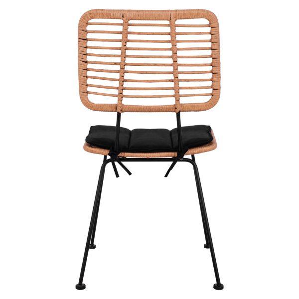 Το κάθισμα της καρέκλας είναι από συνθετικό Rattan σε πλέξη wicker. Στα περισσότερα έπιπλα κήπου και γενικά σε έπιπλα για εξωτερικούς χώρους χρησιμοποιείται συνθετικό Rattan από PVC, δηλαδή τεχνητές ίνες υψηλής ποιότητας. Αυτό δίνει στην κατασκευή εξαιρετική αντοχή και ανθεκτικότητα σε ακραίες συνθήκες ζέστης ή κρύου.