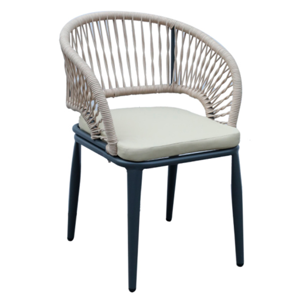 Η πολυθρόνα MAGNET είναι σχεδιασμένη να αγκαλιάζει το σώμα χάρη στην ημικυκλική πλάτη που είναι επενδυμένη με πολυεστερικό σχοινί terylene σε χρώμα ΚΡΕΜ. Το μαξιλάρι στο κάθισμα την καθιστά άνετη και βολική. Ο σκελετός είναι κατασκευασμένος από αλουμίνιο σε ΣΚΟΥΡΟ ΓΚΡΙ χρώμα. Επίσης, το γεγονός ότι είναι στοιβαζόμενη την κάνει ιδιαιτέρως πρακτική αφού μπορείτε να την αποθηκεύσετε στον μικρότερο δυνατό χώρο.