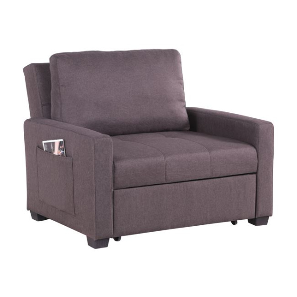 Η πολυθρόνα-κρεβάτι ΚΑΝΝΑ είναι η επιτομή της πρακτικότητας και του όμορφου στυλ. Πρόκειται για μια κοντή πολυθρόνα επενδυμένη με ΚΑΦΕ ποιοτικό ύφασμα και με φαρδύ κάθισμα. Τα μπράτσα είναι κοντά με πρακτικές θήκες για μικροπράγματα στην εξωτερική τους πλευρά, και το αναπαυτικό μαξιλάρι στην πλάτη ολοκληρώνει την σύνθεση. Το στοιχείο που την κάνει να ξεχωρίζει, όμως, είναι ότι με μια απλή κίνηση μπορεί να μετατραπεί σε κρεβάτι προσφέροντας μια ποιοτική λύση για απρόσμενες διανυκτερεύσεις, ή ακόμα και ως δεύτερο κρεβάτι σε σπίτια με περιορισμένο χώρο, όπως φοιτητικά σπίτια.