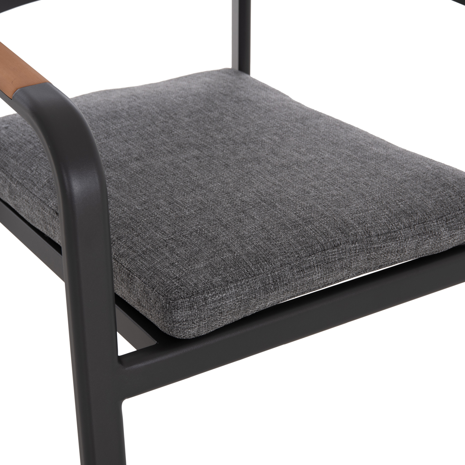 Η πολυθρόνα εξωτερικού χώρου ELARA συνδυάζει μοντέρνα αισθητική, ανθεκτικά υλικά και πρακτική λειτουργικότητα. Ο σκελετός από αλουμίνιο σε σκούρο γκρι χρώμα προσφέρει υψηλή αντοχή στις εξωτερικές συνθήκες, ενώ τα διακοσμητικά τελειώματα από ξύλο teak στα μπράτσα προσθέτουν φυσική και ζεστή πινελιά. Το μαξιλάρι καθίσματος διαθέτει κάλυμμα OLEFIN και αφρό 25D για άνεση κατά τη χρήση. Στοιβαζόμενη για εύκολη αποθήκευση.