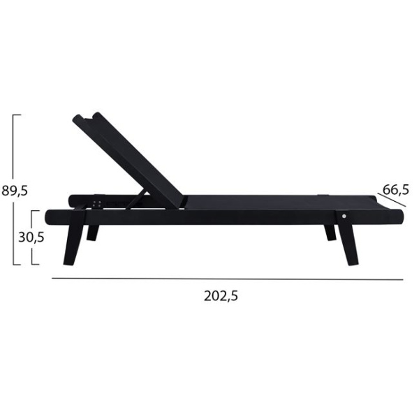 μασίφ ξύλο οξιάς σε μαύρη απόχρωση, επενδυμένη με textilene σε μαύρη απόχρωση.