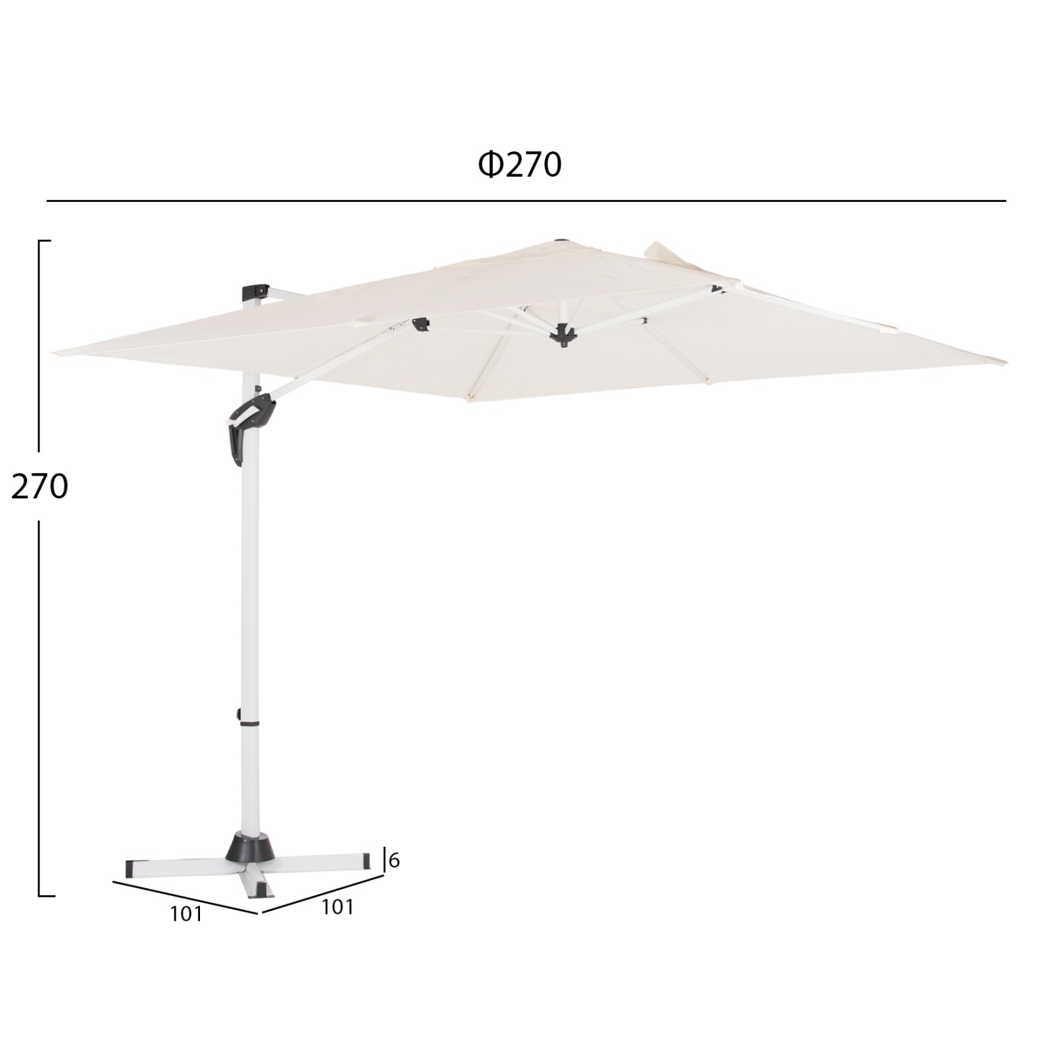 Ομπρέλα Κήπου/Πισίνας JAVANTE 2.7×2.7m με Πλευρικό Ιστό (κρεμαστή) & Περιστροφή 360° – ΛΕΥΚΗ