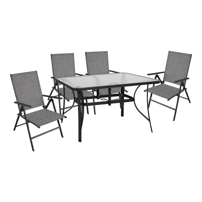 ΣΕΤ 5ΤΜΧ ΤΡΑΠΕΖΙ ΜΕΤΑΛΛΙΚΟ & ΠΤΥΣΣΟΜΕΝΕΣ ΚΑΡΕΚΛΕΣ ΓΚΡΙ HM10558.01