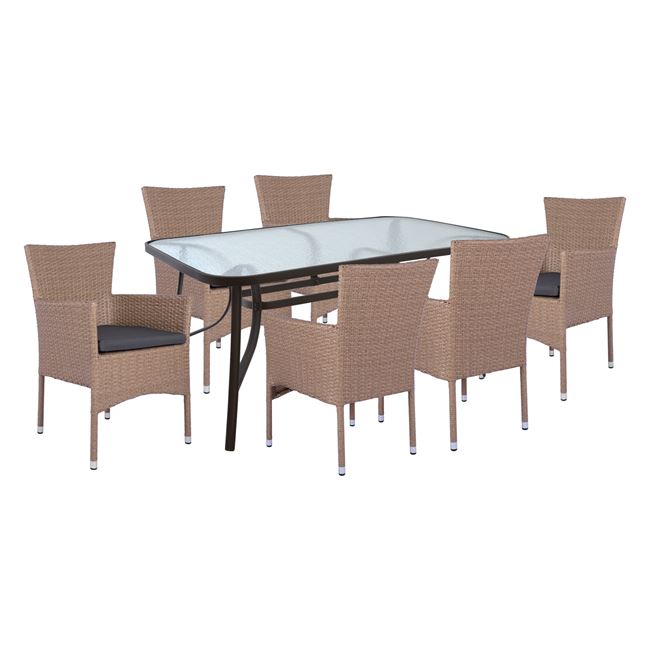 ΣΕΤ 7ΤΜΧ ΤΡΑΠΕΖΙ ΜΕΤΑΛΛΙΚΟ ΚΑΦΕ 160X90 ΜΕ 6 ΠΟΛΥΘΡΟΝΕΣ ΚΑΦΕ-ΜΟΚΑ WICKER HM10587.02