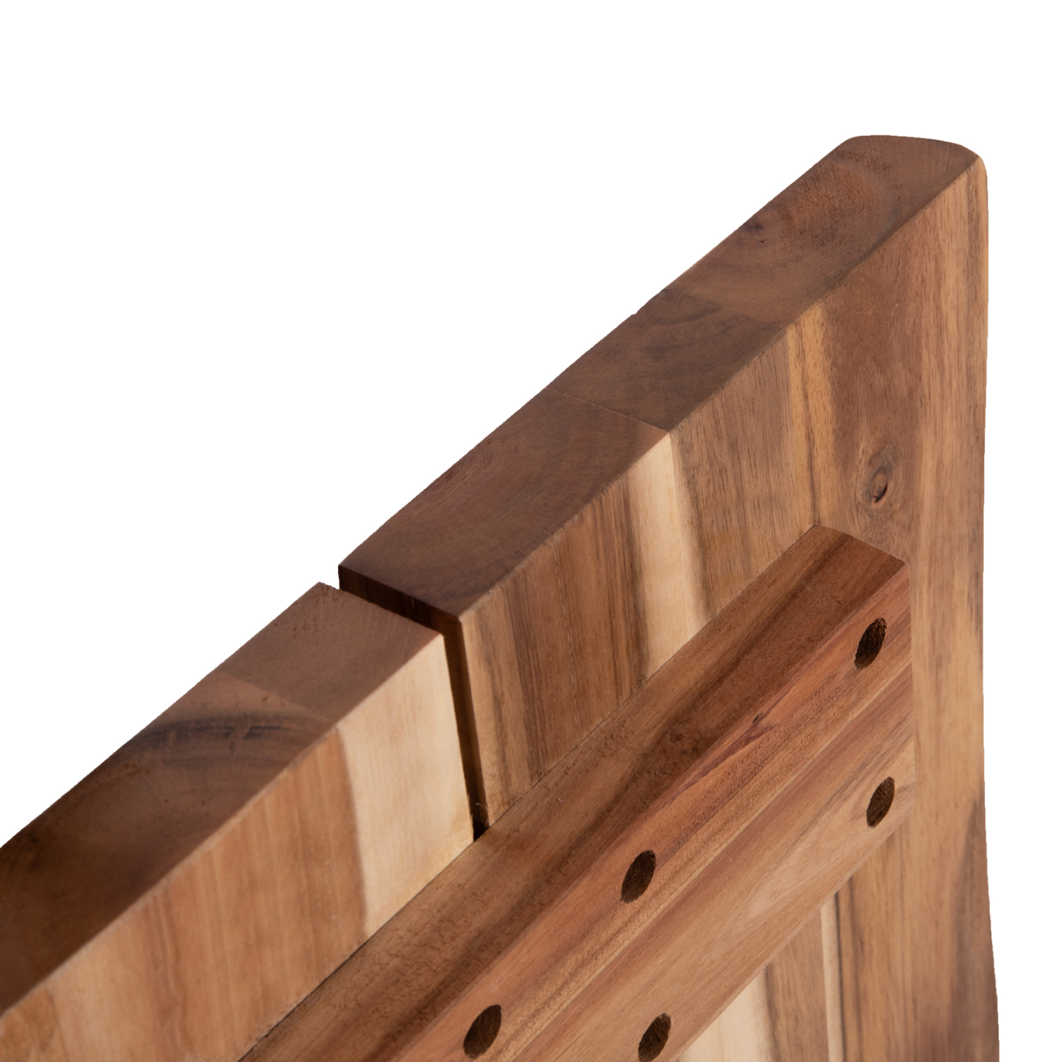 2) Το προϊόν είναι κατασκευασμένο από φυσικό μασίφ ξύλο ακακίας και κάθε ένα είναι μοναδικό λόγω της ανομοιομορφίας των κορμών των δένδρων.