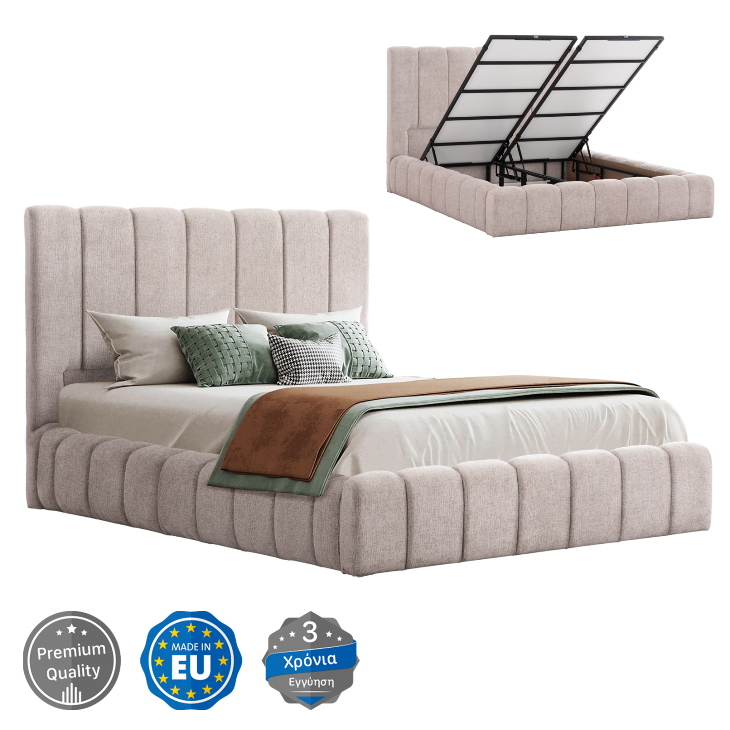ΚΡΕΒΑΤΙ REMO ΜΕ ΑΠΟΘΗΚΕΥΤΙΚΟ ΧΩΡΟ HM719.10 ΥΦΑΣΜΑ TEDDY ΜΠΕΖ-ΓΙΑ ΣΤΡΩΜΑ 160×200εκ