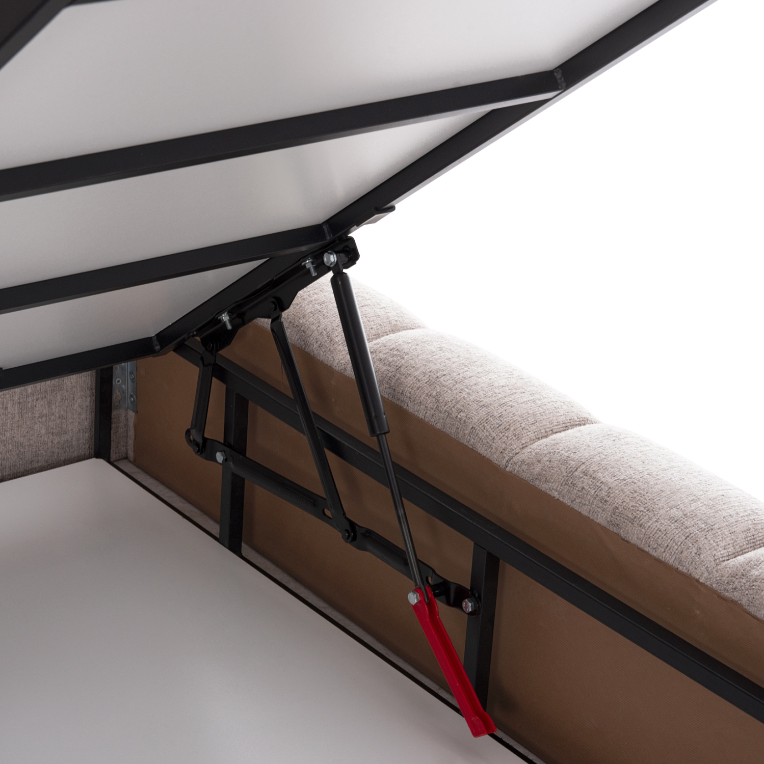 Το REMO είναι ένα κρεβάτι που θα αγαπήσετε με την πρώτη ματιά! Το κεφαλάρι είναι ψηλό με τεχνοτροπία καπιτονέ με κάθετες ραφές από «ζεστό» και εντυπωσιακό ύφασμα TEDDY σε ΜΠΕΖ χρώμα. Τα πλαϊνά του κρεβατιού αλλά και το ποδαρικό είναι ίδιας αισθητικής με το κεφαλάρι και «αγκαλιάζουν» το στρώμα! Όμως, το κύριο χαρακτηριστικό αυτού του κρεβατιού είναι ότι δεν ακολουθεί την κλασική κατασκευή με τις τάβλες του σομιέ για την στήριξη του στρώματος, αλλά αντίθετα αποτελείται από μια συνεχόμενη επιφάνεια (2 μοριοσανίδες), πάνω στις οποίες τοποθετείται το στρώμα! Επιπλέον, η κάθε επιφάνεια από μοριοσανίδα ανασηκώνεται με μεταλλικό μηχανισμό ασφαλείας με 4 αμορτισέρ και διαφανείς πλαστικές λαβές προσφέροντας έναν μεγάλο αποθηκευτικό χώρο. Σε διπλή διάσταση στρώματος 160×200 εκ. θα χωρέσει κάθε σας όνειρο!