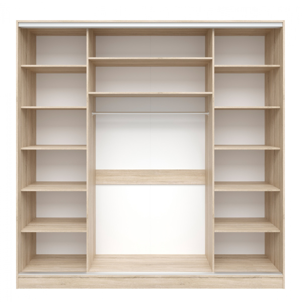 Η ντουλάπα υπνοδωματίου διαθέτει λιτό σχέδιο και το εσωτερικό της περιλαμβάνει στις δύο άκρες, δεξιά και αριστερά, ράφια,που δημιουργούν 6 ευρύχωρα ράφια για αποθήκευση.