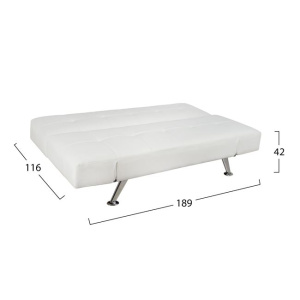 Καναπές κρεβάτι, επενδεδυμένος με τεχνόδερμα σε λευκή απόχρωση 189x93x82 εκ.