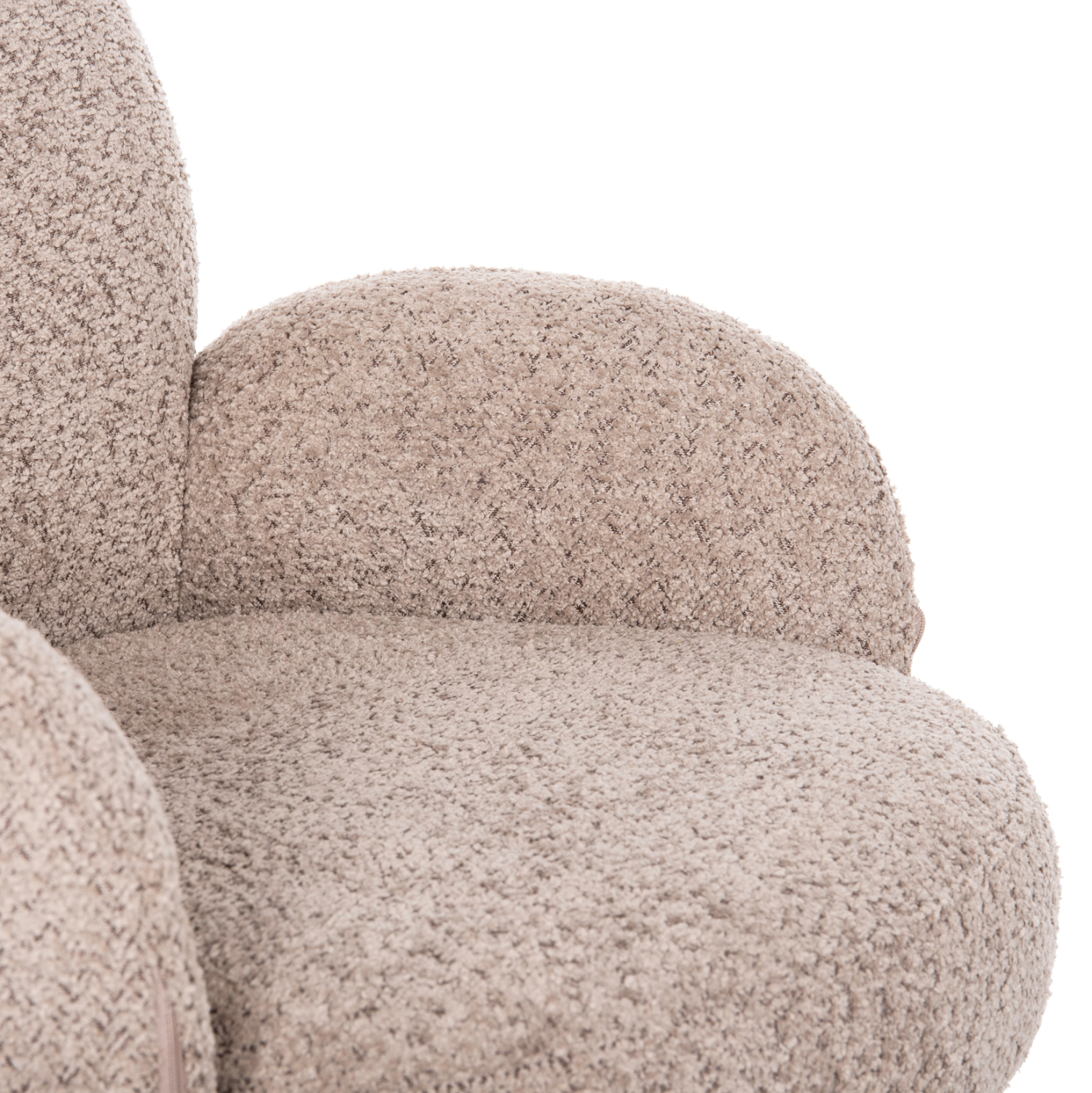 Αυτό το σετ τραπεζαρίας εσωτερικού χώρου αποτελείται από ένα τραπέζι CORBY και 6 πολυθρόνες WINON. Το CORBY είναι ένα μεγάλο τραπέζι τραπεζαρίας με μακρύ οβάλ σχήμα. Η επιφάνεια είναι κεραμική υψηλής ποιότητας σε χρωματισμό ΛΕΥΚΟΥ ΜΑΡΜΑΡΟΥ, ενώ τα πόδια είναι σε ΛΕΥΚΟ χρώμα από MDF. Οι πολυθρόνες WINON σε ΜΠΕΖ χρώμα στηρίζονται σε μια μαύρη μεταλλική σαγρέ τετράνυχη βάση στην οποία είναι τοποθετημένος ο πίρος περιστροφής, καθώς το ιδιαίτερο χαρακτηριστικό τους, είναι ότι η περιστρέφονται κατά 180 μοίρες και όχι πλήρως, και διαθέτουν αυτόματη επαναφορά στην αρχική τους θέση. Η επένδυση τους έχει γίνει με υψηλής ποιότητας TEDDY ύφασμα.