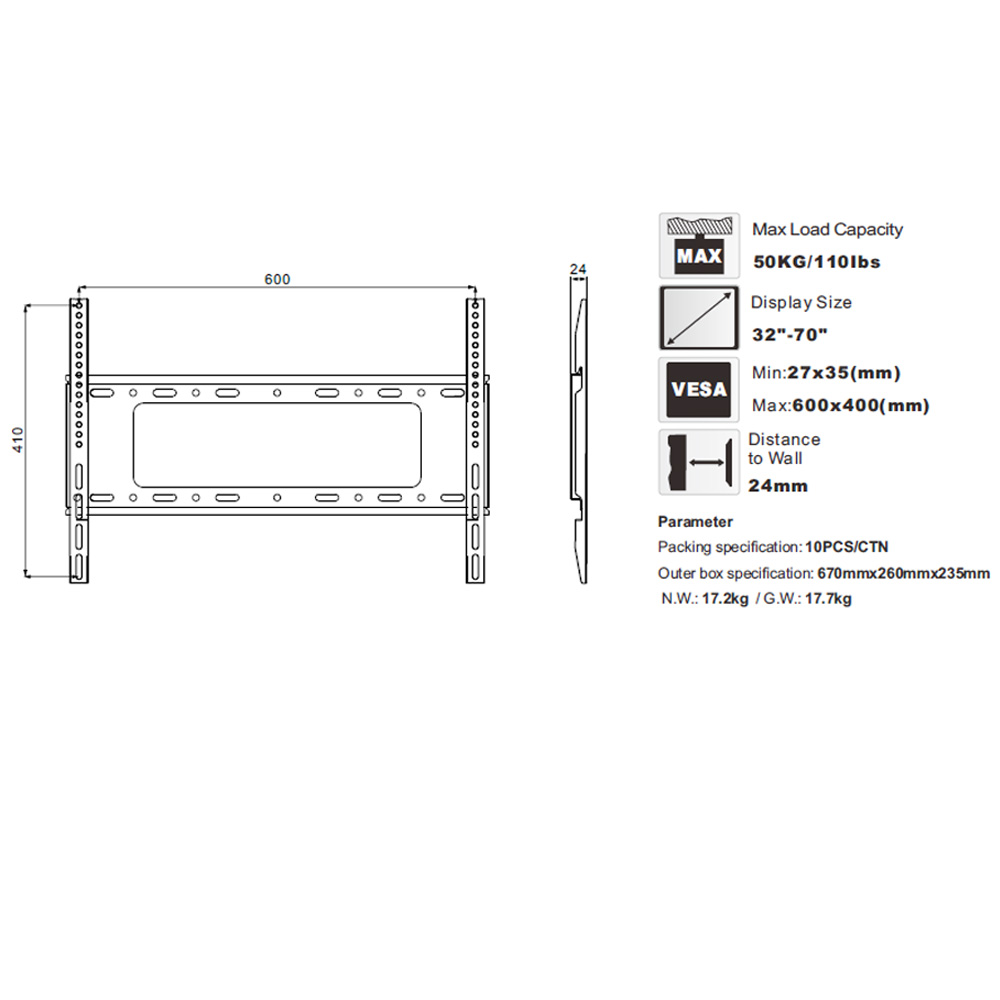 - Max VESA (Διάτρηση Βάσης) (mm)600×400