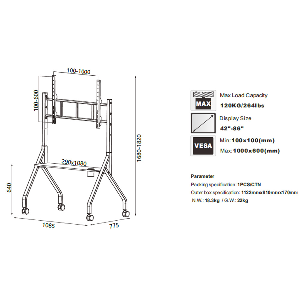 - Max VESA (Διάτρηση Βάσης) (mm)1000×600