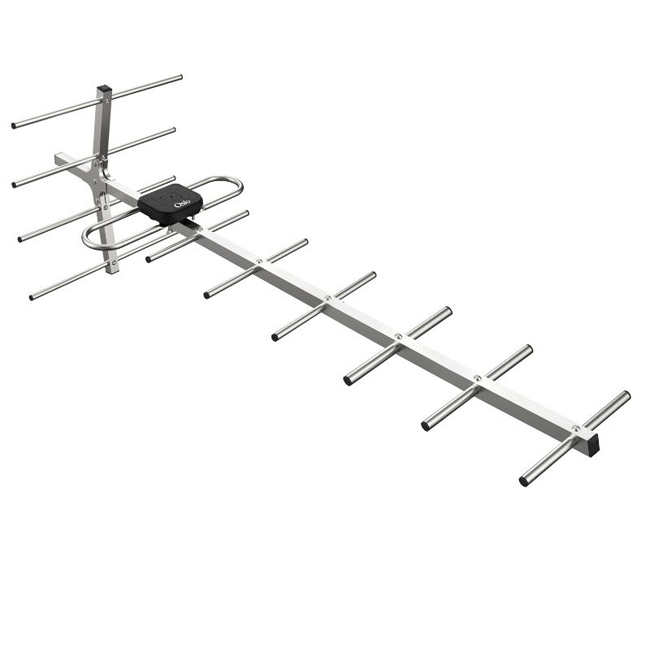 Κεραία τηλεόρασης εξωτερικού χώρου OTA-1014 με 11 στοιχεία. Είναι σχεδιασμένη να καλύπτει τη ζώνη UHF 470 έως και 862MHz και προσφέρει ισχυρό σήμα ανάλυσης Full HD για υψηλή ευκρίνεια. Πρόκειται για μία στιβαρή κεραία με μεγάλη αντοχή τόσο στον ήλιο όσο και στα άλατα, καθώς είναι κατασκευασμένη από αλουμίνιο, ανθεκτικό στις καιρικές συνθήκες. Η συναρμολόγηση γίνεται γρήγορα και εύκολα και τοποθετείται κατακόρυφα.