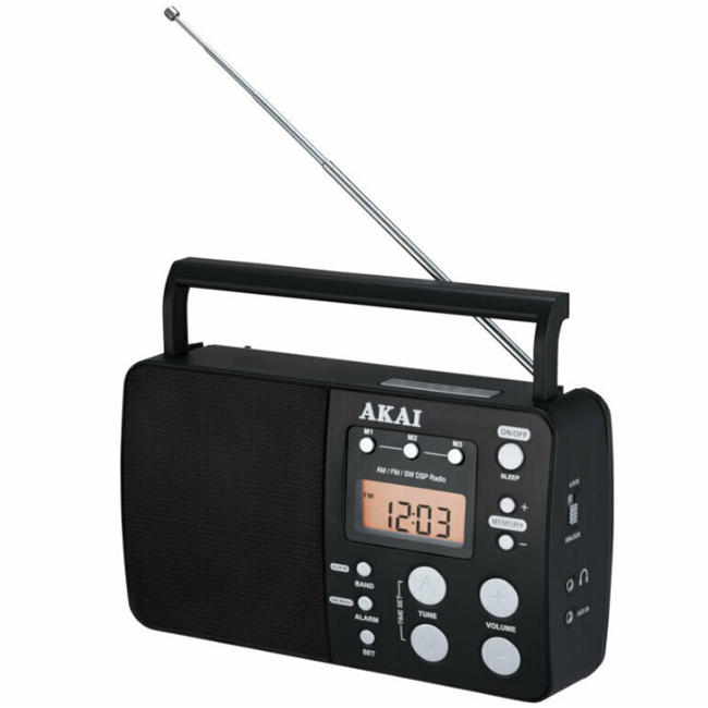 Το επιτραπέζιο ραδιόφωνο της Akai έχει ψηφιακό χειρισμό (με κουμπιά) για να αλλάζετε και να αποθηκεύετε με ευκολία ραδιοφωνικούς σταθμούς. Επιπλέον διαθέτει υποδοχή AUX για να συνδέσετε ενσύρματα συσκευές όπως mp3, iPod, και υποδοχή για ακουστικά για να απολαμβάνετε τη μουσική σας στην ένταση που θέλετε.