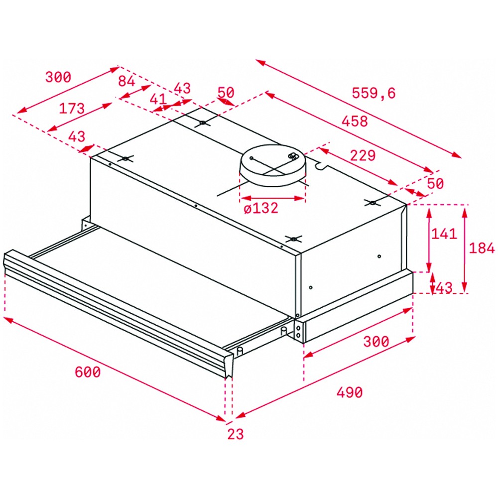 Εσωτερικές διαστάσεις: Εσωτερικό ύψος (mm): 184Εξωτερικές διαστάσεις Ύψος (mm) : 184 Πλάτος (mm): 600 Βάθος (mm): 300/490 Βάρος (Κgs): 7,26 Ιδιαίτερα χαρακτηριστικά: Πιστοποιητικά: CE; CB; Rohs Διάμετρος εξόδου Ø (mm): 120 Κατανάλωση εσωτερικού φωτισμού(W): 1 9 Πρίζα: European plug Ισχύς (V): 230 Συχνότητα (Hz): 50 Συνολική ισχύς περιέχουνητηρα (W): 119 Ισχύς μοτέρ, (W): 110