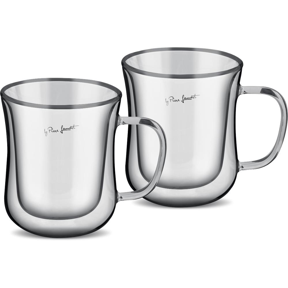 Φλιτζάνι Καφέ Τσαγιού με Χερούλι THERMO Double Wall Σετ 2τεμ. 420ml Lamart LT9008 Διάφανο