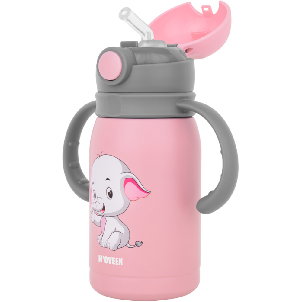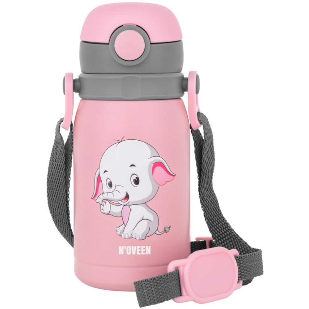 Ποτήρι Θερμός Kids N’oveen TB566 Ανοξείδωτο & Πλαστικό 300ml με Διπλό Τοίχωμα Λουράκι και Εναλλάξιμα Καπάκια Ρόζ