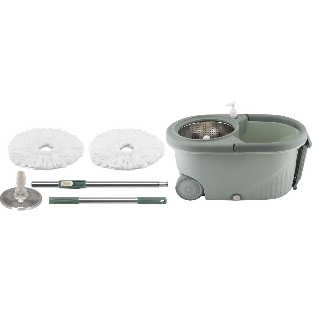 Σέτ κουβά σφουγγαρίσματος και σφουγγαρίστρας. Σύστημα περιστροφικής αποστράγγισης της σφουγγαρίστρας για τέλειο αποτέλεσμα κάθε φορά. Σχεδιασμένη για χρήση σε οποιαδήποτε επιφάνεια χάρη στη κεφαλή σφουγγαρίσματος με μικροϊνες. Το σέτ περιλαμβάνει κουβά χωρητικότητας 7L, περιστροφική σφουγγαρίστρα μικροϊνων, ανταλλακτικό πανί σφουγγαρίσματος και δοχείο για να έχετε πάντα εύκαιρο το υγρό σφουγγαρίσματος.