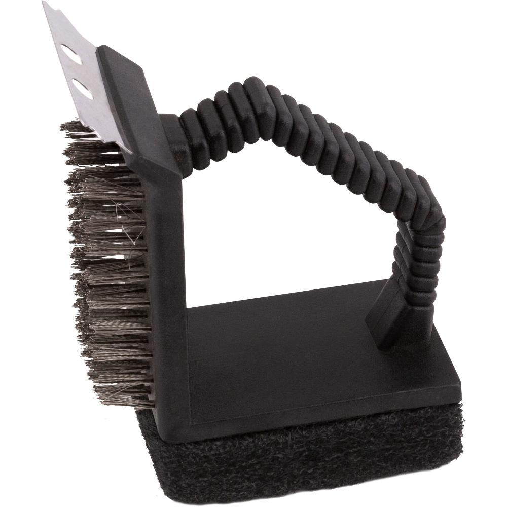 Η βούρτσα ψησταριάς περιέχει ατσάλινες τρίχες, ανοξείδωτη ξύστρα και ατσάλινο μαλλί με πλαστική λαβή που χωράει άνετα στο χέρι σας.