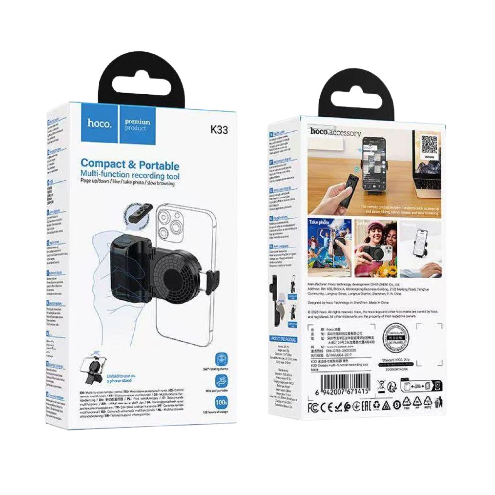 Λαβή/Βάση Στήριξης Κινητού Hoco K33 με Bluetooth Χειριστήριο Περιστροφή 360° Ιδανικό για Καταγραφή Βίντεο και Φωτογραφιών Συμβατο με Κινητά 4.5 – 7″ 55–90mm