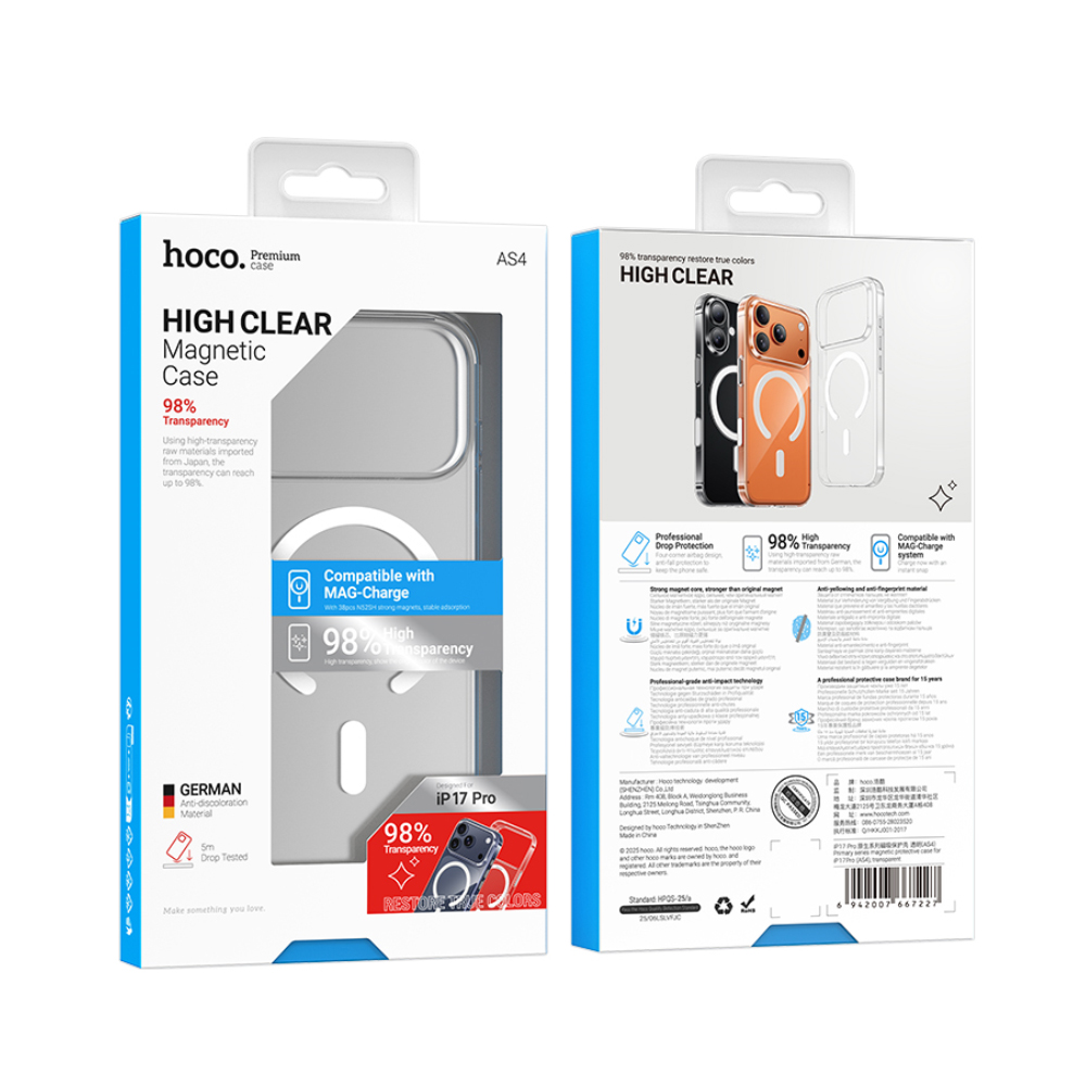 Θήκη Hoco Premium Primary Magsafe για Apple iPhone 17 Pro Διάφανη 98%