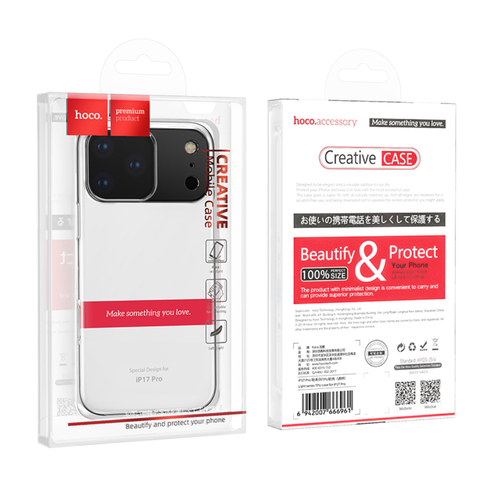 Θήκη Hoco TPU Light Series για Apple iPhone 17 Pro Διάφανη