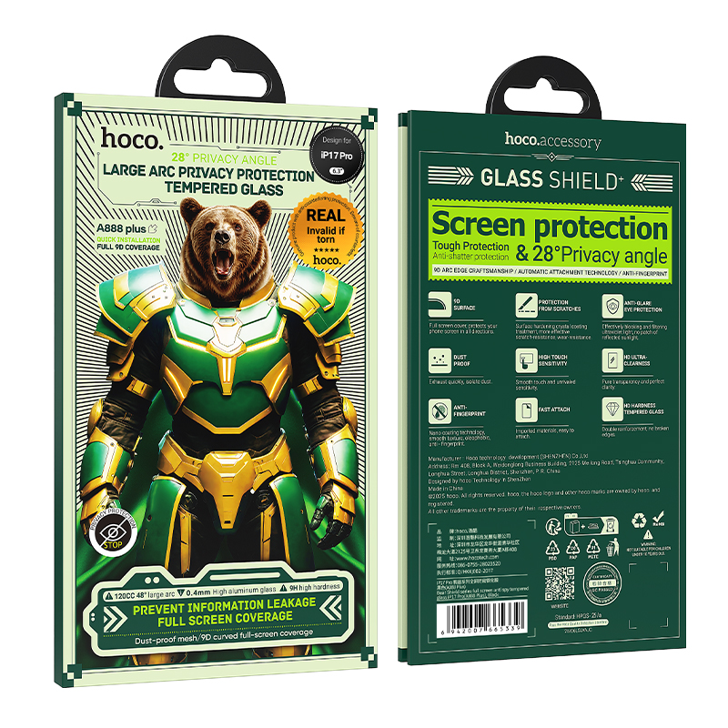 Tempered Glass Hoco Bear Shield A888 HD 4H 0.4mm Large Arc 28 Μοίρες Privacy Protection