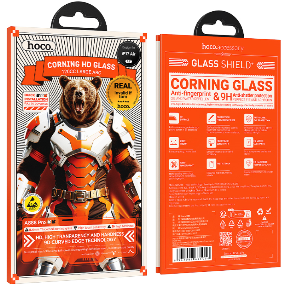 Tempered Glass Hoco Bear Shield A888 Pro Corning Glass Anti Fingerprint για Apple iPhone Air