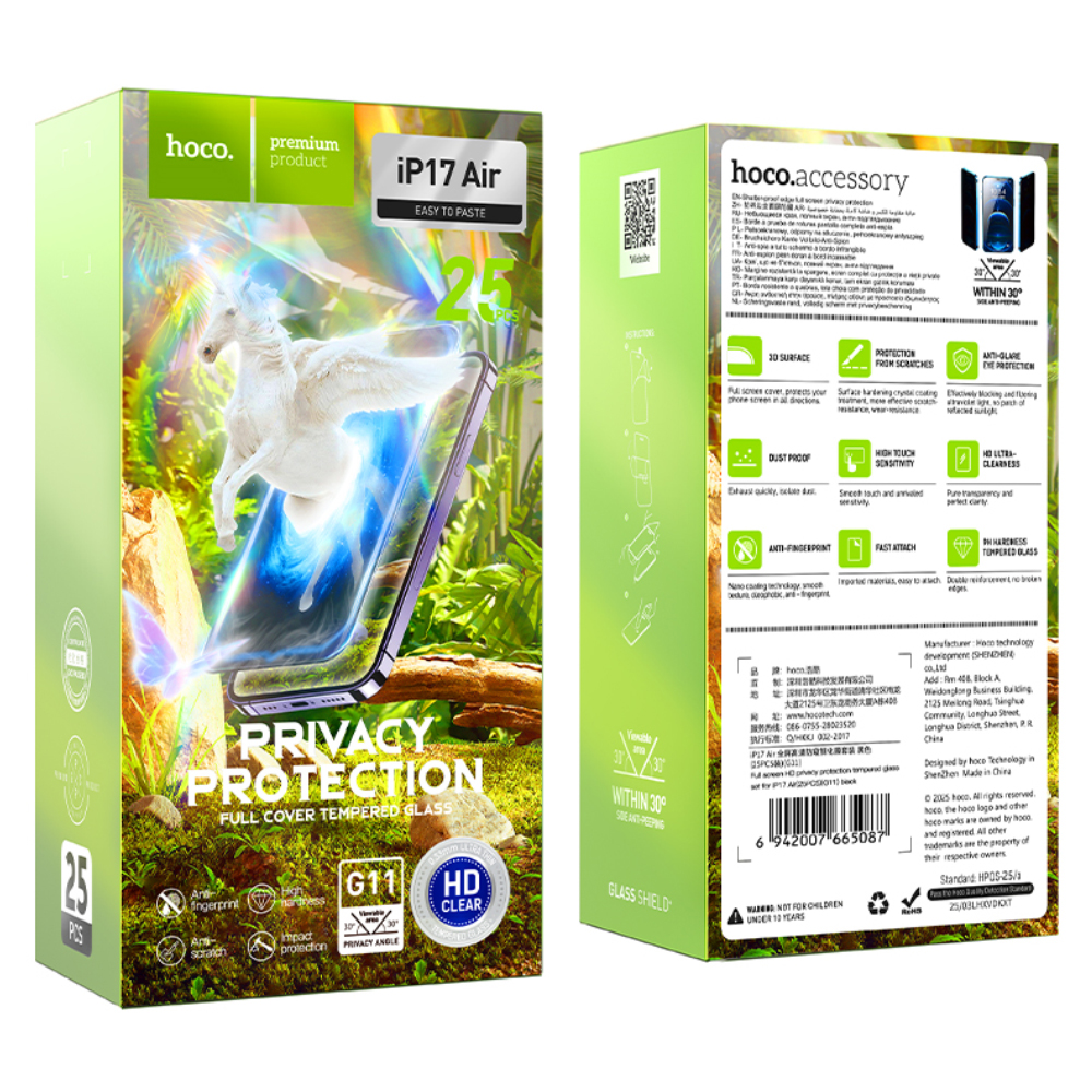 Tempered Glass Hoco G11 0.33mm 30 Μοίρες Privacy Angle για Apple iPhone Air Σετ 25τεμ.