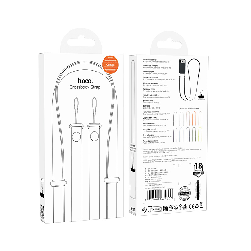 Universal Λουράκι Λαιμού Hoco GH11 για Θήκη Κινητού με Πυκνή Πλέξη και Μεταλλικες Λεπτομέρειες Πορτοκαλί