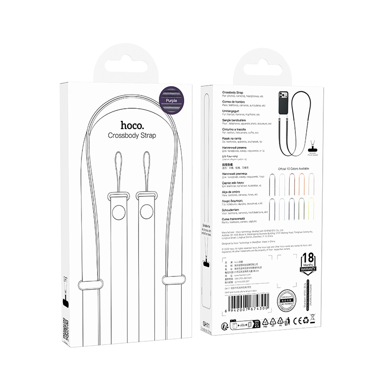 Universal Λουράκι Λαιμού Hoco GH11 για Θήκη Κινητού με Πυκνή Πλέξη και Μεταλλικες Λεπτομέρειες Μωβ