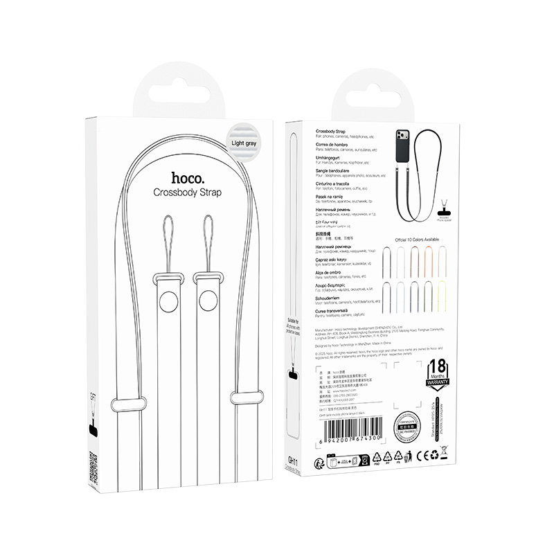 Universal Λουράκι Λαιμού Hoco GH11 για Θήκη Κινητού με Πυκνή Πλέξη και Μεταλλικες Λεπτομέρειες Ανοιχτό Γκρι