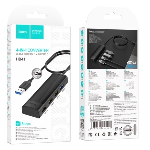Hub USB Hoco HB42 Easy Safety 4-in-1 USB σε 3xUSB 3.0 5Gbps και RJ45 1000Mbps 1.2m Μαύρο