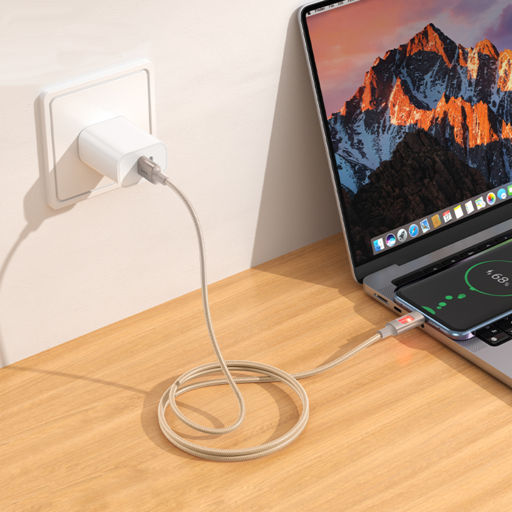 Καλώδιο Hoco U144 USB-A σε USB-C Fast Charging 2.4A με Φωτισμό Braided Χρυσό 1.2m