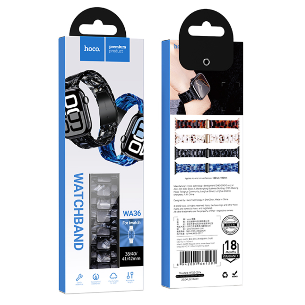 Watchband Hoco WA36 Elegant Series 38/40/41/42mm Πλαστικό Μπρασελέ Strap για Apple Watch series 1/2/3/4/5/6/7/8/9/SE/SE2 Μαύρο